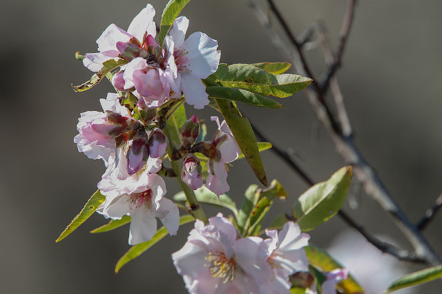 In sunny, sheltered nooks, there were some Almond trees that were in full bloom and cover in bees.